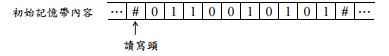 【已刪除】 (2)若圖靈機的儲存記憶帶的初始內容如下,執行結束後,記憶帶的內容為何?(3 分)