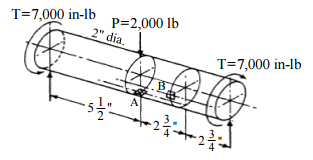 【已刪除】四、圖中的軸承(Bearing)受到如圖示的穩定負荷,而且不旋轉。 請於 A 點元素中,繪 製顯示其應力狀態的立方塊,並使用莫爾圓計算該位置的主應力。(10 分 請於 B 點元素中,繪製顯示其應力狀態的立方塊,並使用莫爾圓計算該位置的主應力。 (10 分)(請將位置的橫向剪應力效應納入計算。)