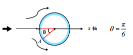 ,詳如下圖 所示。已知,圓球直徑為 15 公分,流體則以每小時 158.5 公里的速度直線朝向球體流 動。請問,在 A 點處其流體的加速度為何?(20 分)