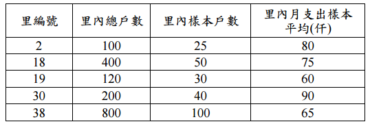請推估本鎮家戶月支出平均,並說明(不須計算)其估計量之變異數估計程序。 (10 分)