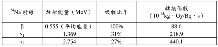 Na 的有效半化期是 14.2 小時,請依下表計算此人的總吸收劑量。 (20 分)