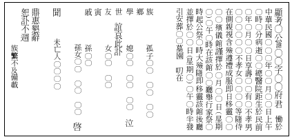 小五郎在圖書館裡讀到訃文一則如右。下列敘述何者正確?