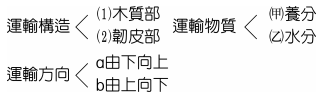 10567 請依據下列資料,選出植物維管束運輸的正確組合: