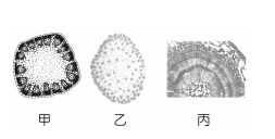 10573 顯微鏡下看到甲、乙、丙三種植物的莖橫切面如圖,下列敘述何者正確?