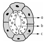 (A)c能製造養 分(B)白天有光時b開放(C)a能調節b的開閉(D)b為水分散失的門戶。