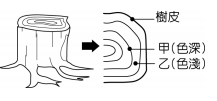 10618 小黃家裡鋪了原木地板,她看到原木條紋如圖。下列敘述何者正確?