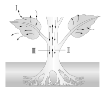 10625 如圖為整株植物之運輸作用的模型圖,Ⅰ、Ⅱ、Ⅲ分別表示輸送的方向,則下面的敘述哪一項 是錯誤的?