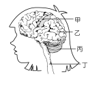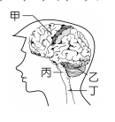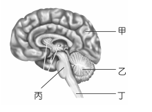 (A)甲是望梅止湯的反射中樞(B)乙可 維持我們騎腳踏車時身體的平衡(C)丙可受二氧化碳刺激,促使呼吸運動加快(D)丁是四肢產 生反射動作的反射中樞。
