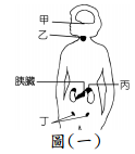 (1)如圖(一),當警察臨檢時,小英哪種器官的分泌激素會增加?
