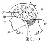 (3)如圖(二),雖然小英挽回了一條命,但卻永遠失明了且身體無法保持平衡,可能因腦部何 處受到嚴重損傷?