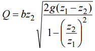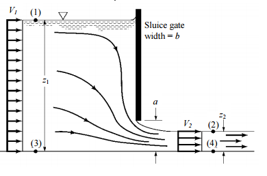 【已刪除】四、在水利工程或灌漑工程,經常需要簡便之流量量測設施。閘門則是在明渠(open channel)中一種簡便之流量量測設施,應用柏努力方程式與連續方程式推導,即可 使該簡便設施達到準確之流量量測。參閱下圖,請推導渠道出水流量 Q 與閘門前後 上下游水深 1 z 與 2 z 之關係式: