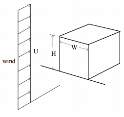【已刪除】二、都市寸土寸金,建築物皆往高空發展,因此都會區高樓林立,一摩天大樓(如下圖 所示)高 H=200 m,寬 W=100 m。假定該大樓迎風面之平均風速 10 m/s,空氣密度 為 1.2 kg/m