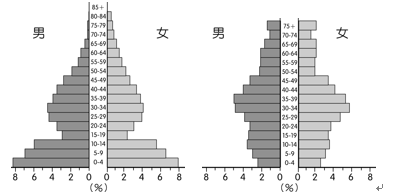 【已刪除】43.下圖為香港 1961(左)、1996 年(右)的人口金字塔。請試著分析為何1961年香港的人口金字塔在15~19歲的年齡層特別少?