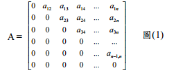 四、有一個 n*n 的矩陣 A 如圖(1)所示。其中在 i<j 時存有不同的資料,但 i≧j 時 aij=0,