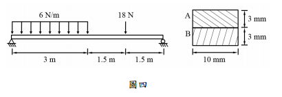 【已刪除】四、一個由兩種材料所構成之複合樑,其受外力負載作用情形如圖四所示,材料 A 之楊 氏係數 E