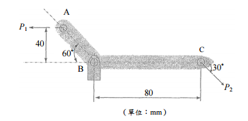 【已刪除】五、如圖所示一搖臂,已知:負載 P1 = 100 kN,P2 = 50 kN,容許剪應力τ