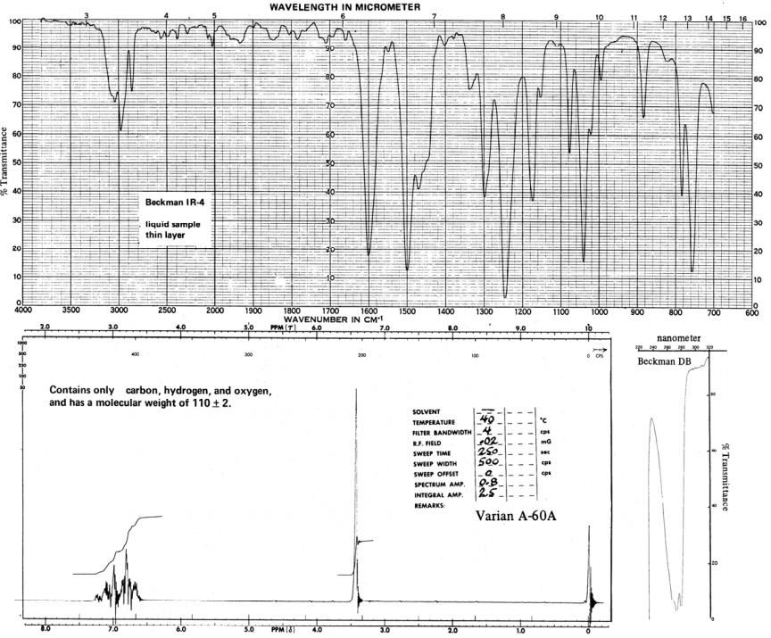 【已刪除】⑷下圖是某化合物(僅含 C, H, O 三個元素,分子量為 110±2 g/mol)之 IR 紅外線光 譜、