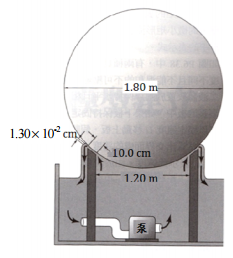 【已刪除】四、有一花崗石圓球被放在一圓桶形台座之上,如圖所示。石球可以近於無摩擦方式在 水上緩慢轉動。已知石球質量 6340 kg,試以靜水壓估算球下水壓為何?球與台座間之 流動可視為兩平板間之層流,試估算其流量為何?提示:V= ΔP• H