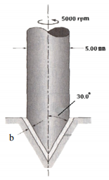 【已刪除】一、有一電子設備之轉軸及軸承,如圖所示。轉軸與下方固定座之間有 b = 0.0250 mm 之 空隙,空隙內填滿比重為 0.785 之潤滑油。當轉軸轉速為 5000 rpm 時,轉軸與潤滑 油之摩擦轉矩為 1.23×10