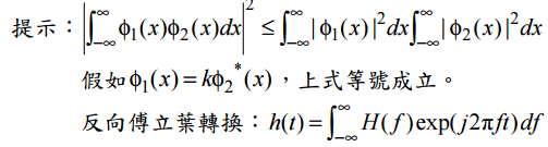 其中濾波器輸入 x(t ) 包含欲接收之信號 g (t ) 及白雜訊 w(t ) , T 表信號期間。設 w(t ) 之平均值為零,且其功率頻譜密度為 N