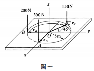 【已刪除】一、如圖一所示之圓盤,試求此力系之合力 R 大小及其作用位置。 (25 分)