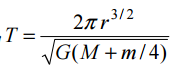 【已刪除】二、在一個三顆星的系統中,兩顆質量都是 m 的小星星繞著一個質量為 M 的大星星以半 徑為 r 做圓周運動,而且這兩個小星星的位置總是在軌道直徑的兩端,請證明小星星 的運行週期為