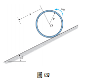 【已刪除】四、如圖四所示之一薄圓環質量為 m、半徑為 r,其中心為 O 點,初始之角速度為 ω0。 假設重力加速度為 g,圓環於角度為 θ 之斜面無滑動滾下,試求 O 點移動 s 距離後 之圓環角速度 ω。(20 分)