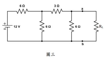 ⑵一電路如圖二所示,試求 a、b 兩端之等效電阻 R