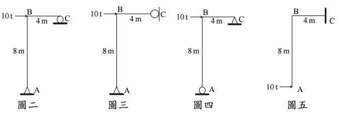 【已刪除】二、繪製圖二〜圖五所示剛構之剪力與彎矩圖。(20 分)