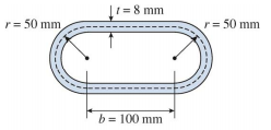 【已刪除】四、有一鋼製(G = 76 GPa)薄壁管件,其截面如圖所示,長度為 L = 1.5 m 且承受軸向 扭矩 T = 10 kN-m。試求此管件之扭轉剪應力及變形扭轉角。(20 分)