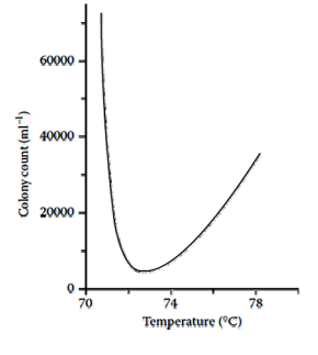 【已刪除】七、下圖顯示隨著加熱溫度的上升(70℃~78℃),生乳經過熱處理 20 秒,然後於 7℃冷 藏 7 天的鮮乳菌數變化。試解釋其變化原理。(15 分)