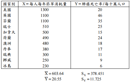 【已刪除】三、Doll 在 1955 年發表一篇研究探討肺癌死亡率與每人每年菸草消耗量之相關性,其數 據如下: