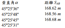 共三次,其結果分別記錄如下: 垂直角α 距離