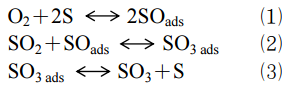 【已刪除】三、二氧化硫在白金(Pt)觸媒進行異相催化氧化反應形成三氧化硫,其反應機制可由 下列子反應組成: