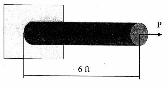 psi)如下圖所示,其直徑為0.85 in,在製造過程中必須獲得100 in-lb 的彈性應變能,若假設永久變形的安全係數為5,請求得該鋼桿材料的降伏強度。(20%)