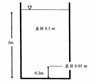 【已刪除】3.圓形水槽的直徑為0.5m,假設在水槽右下端讓水自由流出,若水槽内水位高2.0m,出水 口處水位高0.2 m,當水槽内水位降至0.4m時,需要多久時間?(25分)