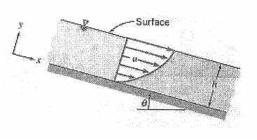Express the mass flow rate per unit width in terms of p,u, g,θ, and h .