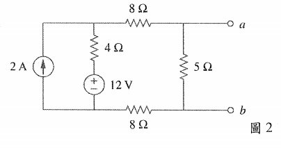 【已刪除】2. (20%)考慮圖2的電路,求兩端間的戴維寧等效電路。