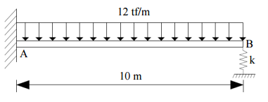 ,k = 300 tf/m,在已知荷載條件下。試求此梁 B 點之支 承反力?(25 分)