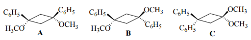H 的核磁共振光譜區分下列異構物 A~C。(5 分)