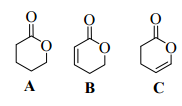 【已刪除】六、下列三種內酯 A,B,C 的紅外線光譜,在 C=O 鍵的振動吸收信號皆不相同,請依吸收 的波數大小排列,並說明你的理由。(10 分)