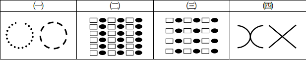 【已刪除】四、以完形心理學的觀點,請分別說明下列四種圖形的特性。(每小題 5 分,共 20 分)