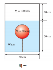 =30 cm,繫於一裝有水的容器底部(如圖一所示)。容器內 的空氣壓力若由初始壓力 P