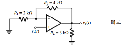 【已刪除】三、圖三電路之放大器的開路電壓增益為 A = 54 V/V,輸入阻抗 R