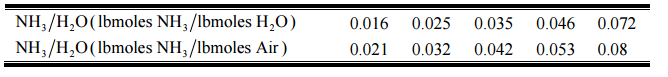 【已刪除】五、利用水將空氣中的氨於吸收塔中移除,塔操作在 60 ℉,氣體進料為 1500 ft