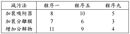 技術人員欲決定各程序使用各種減污法的比例,使得在滿足減少污染物排放的規定下,