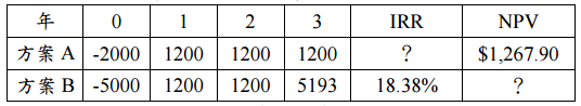 【已刪除】四、考慮以下兩種方案,已知最低吸引報酬率 MARR=5%,