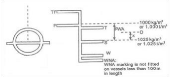 18. 船舶載重線標誌的英文代表符號,由上到下的順序為何? (A) T → S → W → WNA (B) T → S → WNA → W (C) T → W → S → WNA (D) T→W→ WNA→ S