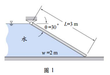 【已刪除】一、厚度固定的平閘門,如圖 1 中一樣某深度的水阻攔著。求為保持閘門緊閉的最輕的 門重需是多少?(25 分)