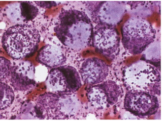 75.犬皮膚腫塊細胞學採樣鏡檢觀察結果如下圖,該犬最可能罹患下列何種腫瘤? (A)淋巴瘤(lymphoma) (B)肥大細胞瘤(mast cell tumor) (C)漿細胞瘤(plasmacytoma) (D)組織細胞瘤(histiocytoma)
